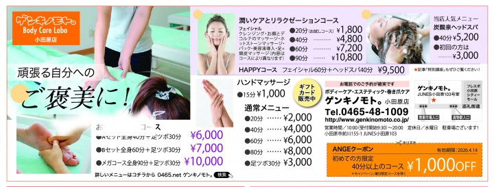 健康=キレイをテーマに、あなたに合ったケアを提案します。 首、肩の凝り、腰痛はゲンキノモト。お任せ下さい。