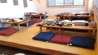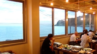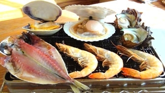 広大な海を眺めながら海鮮バーベキューはいかがですか?2Fの食事処にはテーブル席、座敷席どちらもございます。新鮮な魚介&当店自慢の干物をゆっくりとご堪能ください。また、様々な種類の干物は一枚から販売しておりますのでお土産にもぜひどうぞ。