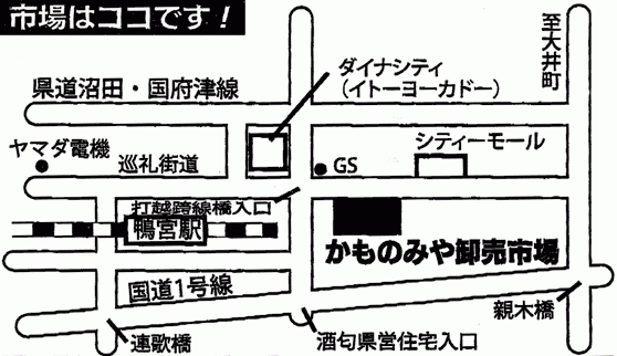 小田原の台所を預かる、当かものみや市場では、新鮮な野菜、果物、鮮魚、生花、食品、漬物、お菓子、雑貨、酒、すべての物が揃う市場です。 尚、市場ならではの価額で販売しています。 地域のコミュニティステイションとしてお客様のご来店をお待ちしております