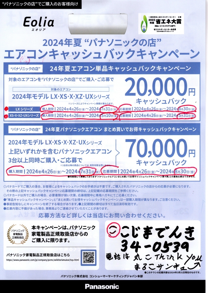 不具合、不明な事がありましたら、こじまでんきへどうぞ。