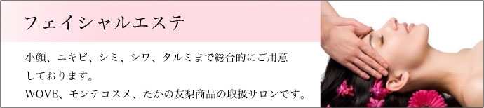究極のリラクゼーションを貴女に・・・そして貴女の美しさを引き出すお手伝い・・・貴女に秘密の隠れ家・・・いつも心をこめて「永遠に美しく」をあなたに・・・極上のひと時を体感ください。お肌は体の大部分を占めています。お肌が変われば見た目年齢は10歳は若くなれます。艶・ハリ肌を保つ為にしっかりケアしませんか・・・