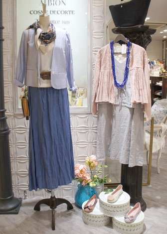 Jill StuartとPaul & Joeコスメの英国的な雰囲気が、お手入れエステスペースまで一つのコーナーでまとまりました。衣料品はフランス パリの要素を!エルベシャペリエ、St. ジェームスを始め、インポート製品が揃います。