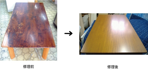 | 【修理例】テーブルも処理をして、再塗装するとピカピカ! |