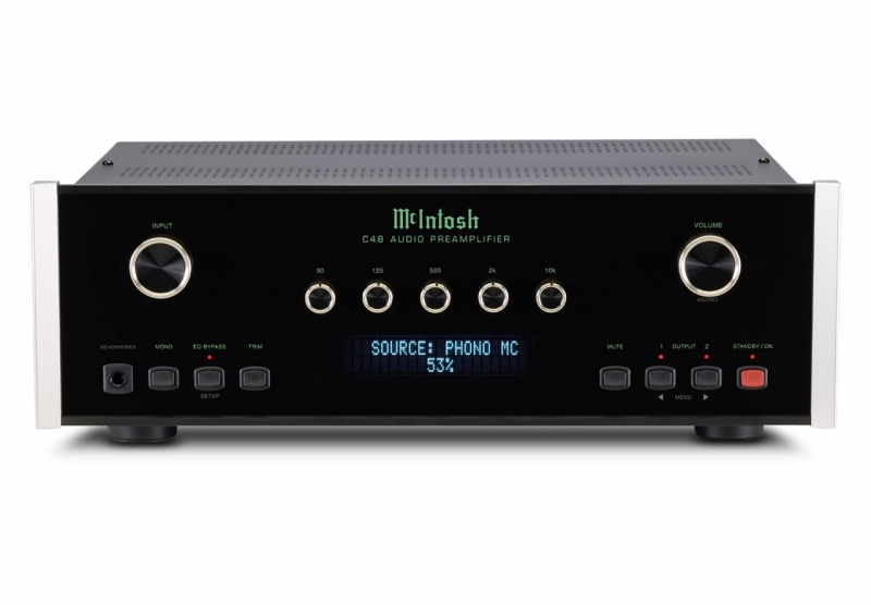 C48は、最新式多機能型コントロールアンプC50をよりシンプルな構成にしたニュー・スタンダード・プリアンプです。シンプルながらも、ハイグレードMCフォノ回路や高音質ソースのイコライジングにも対応した5バンドイコライザーといった、長年培ってきたマッキントッシュ・クォリティーが随所に盛り込まれています。また、今後拡大していくデジタルソースにも対応するUSB/光/同軸デジタル入力も装備しています。