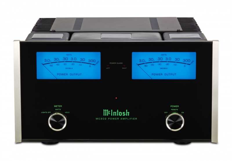 MC302は、出力段パワー素子に米国オンセミコンダクター社製ThermalTrak™バイポーラ・パワートランジスタを採用、ステレオ300W+300Wものハイパワーハンドリングを実現しました。さらに、マッキントッシュならではの「オートフォーマー」、「パワーガード」などの保護回路によって、機器の破損防止に万全を期しています。鮮やかなブルーアイズメーターが映える漆黒のガラスパネルを使用し、往年の名機を彷彿させるフラット・パネル・デザインとなっています。
