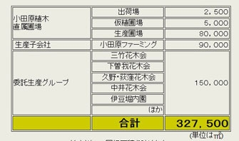 「緑と共に地域の発展を!!」をキャッチフレーズに、豊かな生活空間を創造しております。 お庭づくりの相談、造園屋さんの紹介もしていますのでお気軽に相談下さい。 また、植木生産圃場をオープンナーセリーとして無料開放しています。毎年全国のJAや諸団体の研修、個人様の学習やハイキングを兼ねたレクレーションの場として多くの方にお越し頂いています。樹木板が付いた圃場は四季折々の顔を見せ、まさに『楽しめる植木植物園』です。周辺には辻村植物園、小田原フラワーガーデンなどもございます。初めてお越しの節は一度ご連絡下さいますと助かります。 約60年間、観葉植物のリースを営んでまいりましたが、2014年8月をもちまして業を廃することとなりました。お付き合いの中での至らなさをお詫びするとともにご愛顧を感謝申し上げます。今後は本業の植木の生産一筋に励んでいく所存でおりますので、ご支援ご鞭撻を宜しくお願い致します。