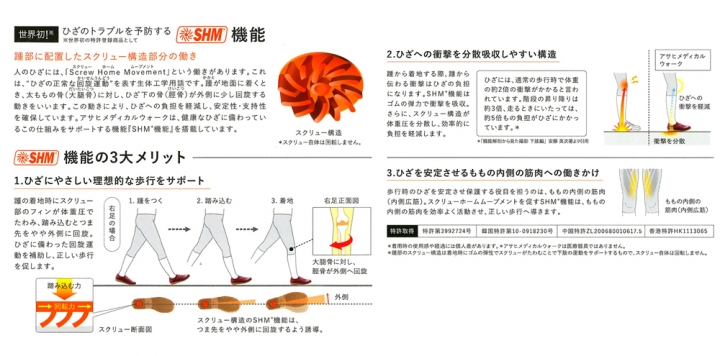 踵部に設置されたスクリュー効果で、安定感のあるひざに優しい歩き方へ。