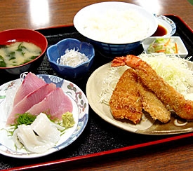[港の昼定食] さしみ・フライ他 (朝でもどうぞ) 1,550円